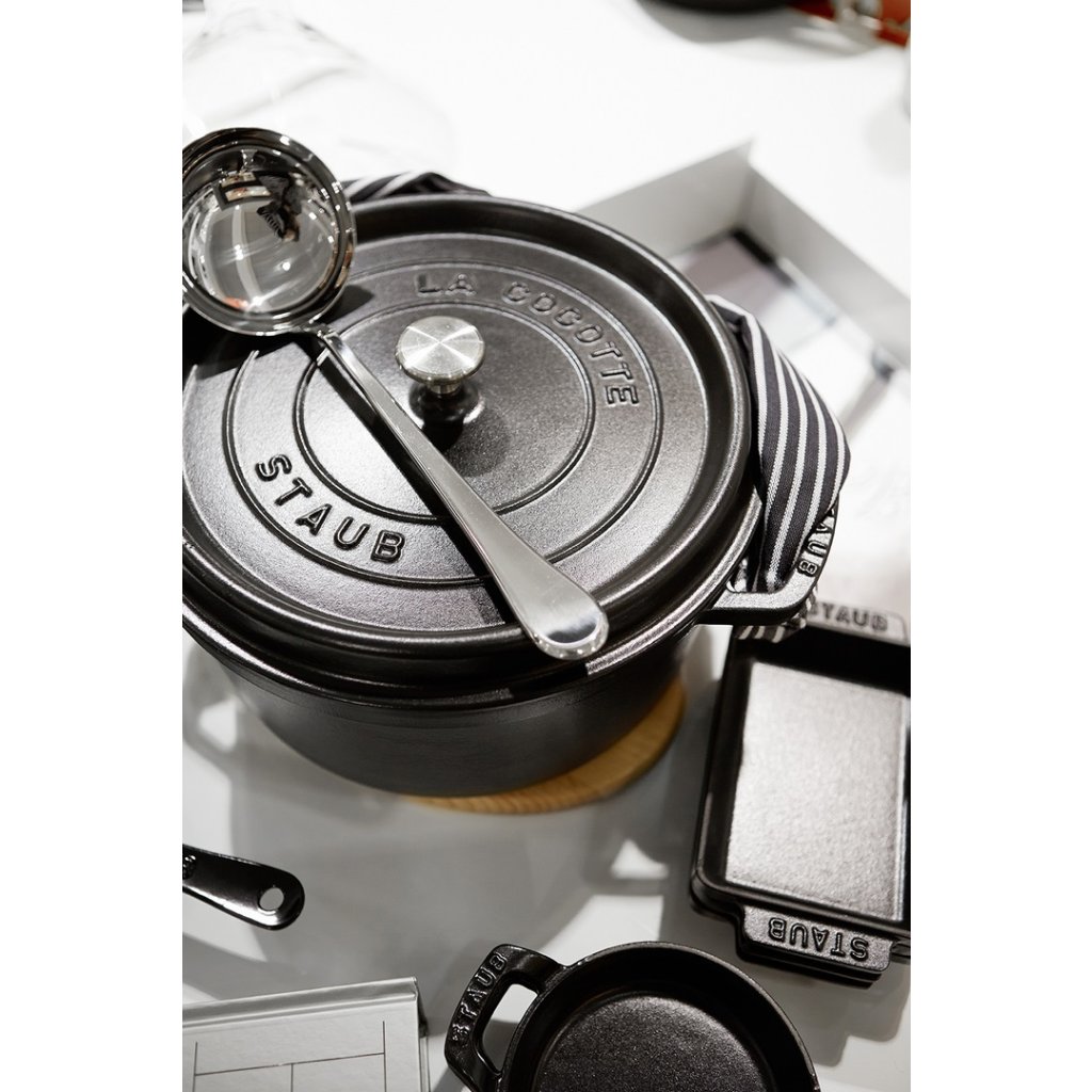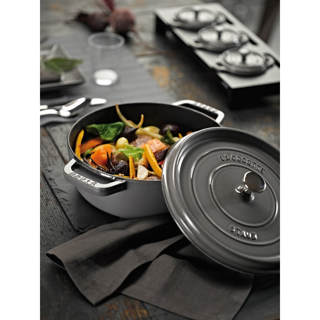 Apvalus ketaus puodas yra amžinas pagalbininkas troškinimui, kepimui, sriuboms ir vieno puodo patiekalams ruošti. STAUB emaliuotame ketaus puode arba "COCOTTE" labai paprasta gaminti bet ką.