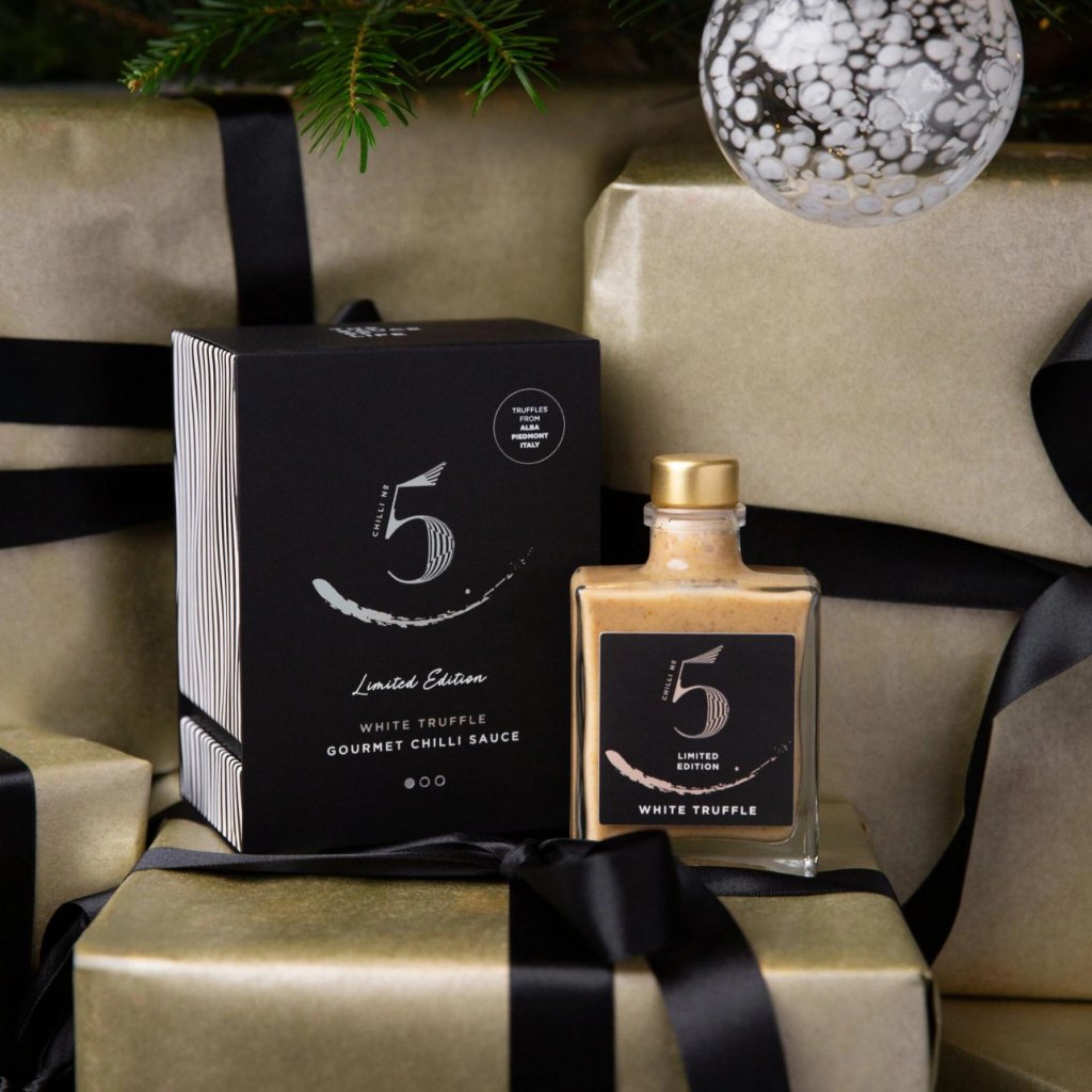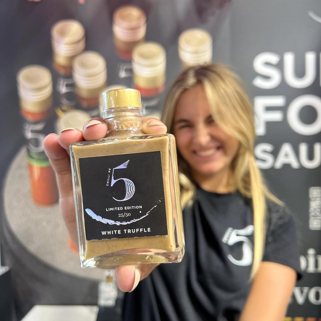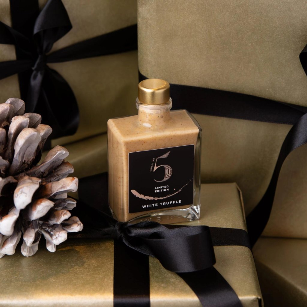 - „WHITE TRUFFLE by Chilli No5“ – tai riboto leidimo prabangus čili padažas, kuriame derinami reti triufeliai iš Albos (Italija) su gurmaniškais ingredientais iš Prancūzijos ir Italijos, sukuriant unikalią skonio patirtį.