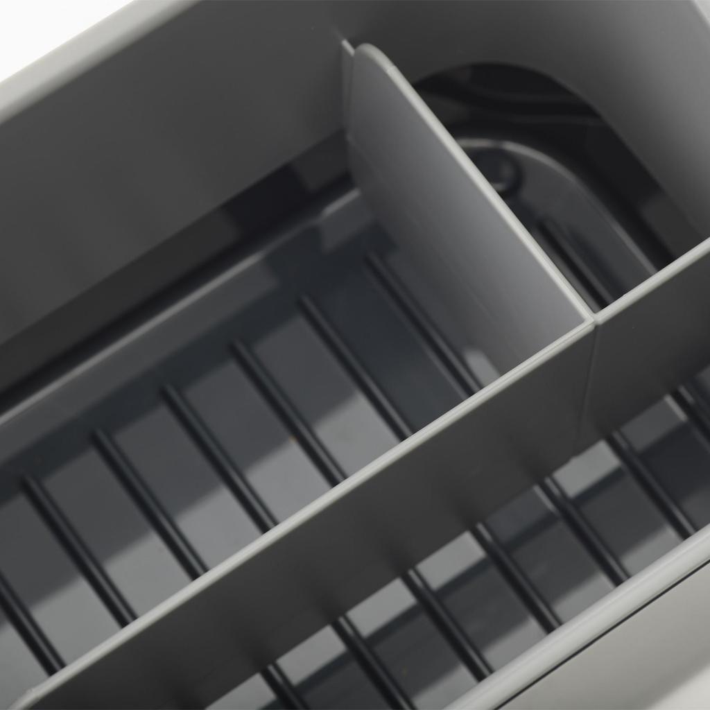 - Erdvi daiktadėžė padalinta į tris atskiras dalis, todėl galite lengvai atskirti ploviklio buteliuką, indų šepetėlis ir kempinėles arba šveitimo pagalvėles.