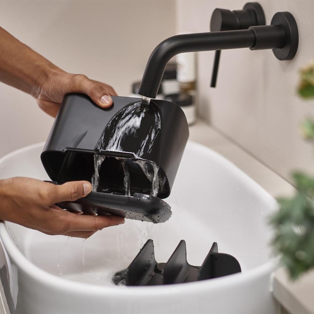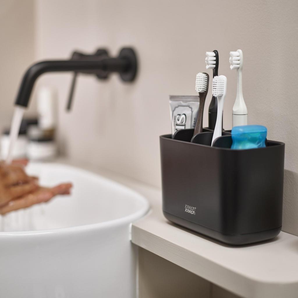 - Dantų šepetėlių puodukas EASYSTORE juodos spalvos siūlo erdų ir elegantišką sprendimą tvarkingai organizuoti visos šeimos kasdienę burnos higieną.