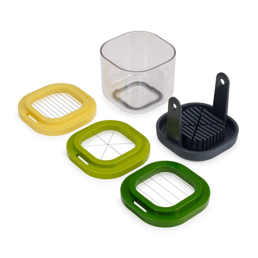- Kompaktiška Joseph Joseph MULTI-PREP MINI daržovių pjaustyklė leidžia greitai ir tiksliai pjaustyti minkštesnius maisto produktus dėl trijų keičiamų nerūdijančio plieno priedėlių, laikomų praktiškame inde.