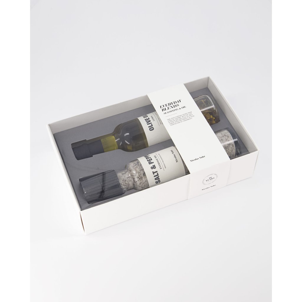 Druska, pipirai ir alyvuogių aliejus dovanų rinkinyje, Nicolas Vahé