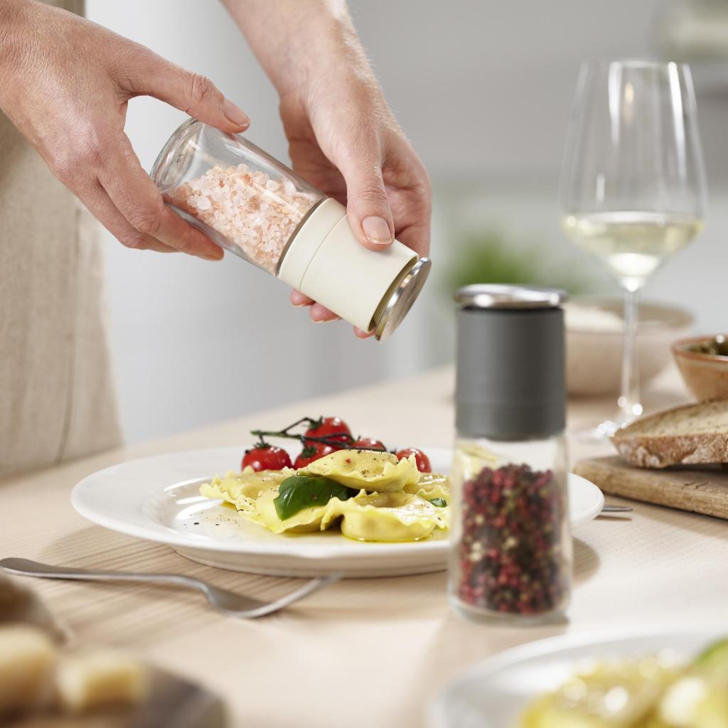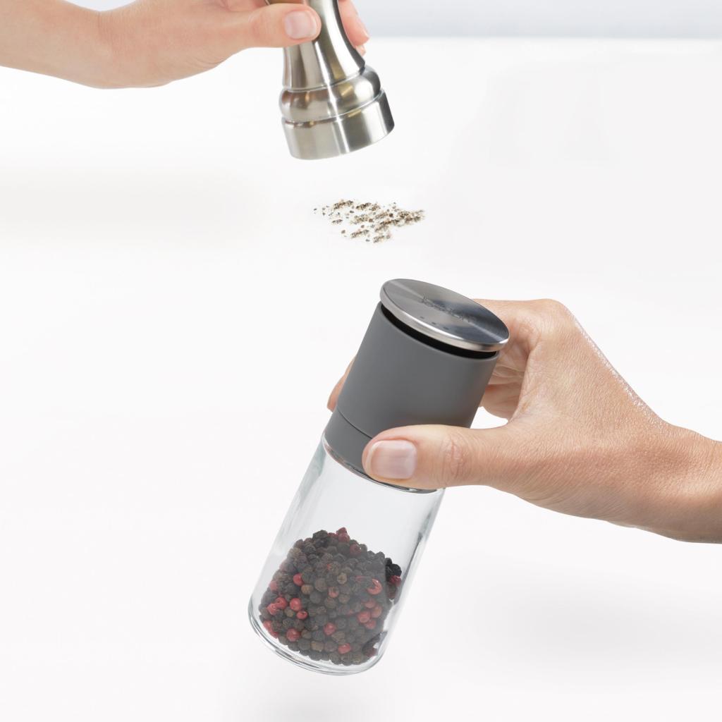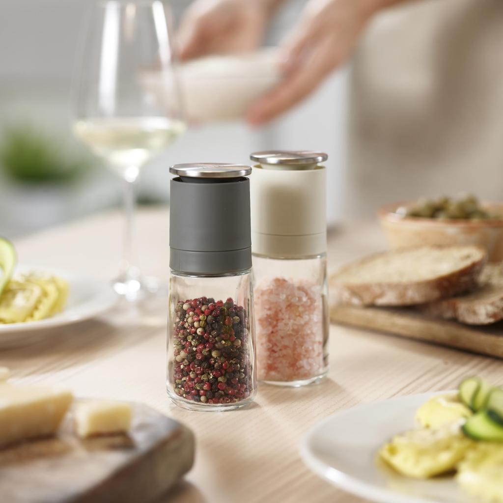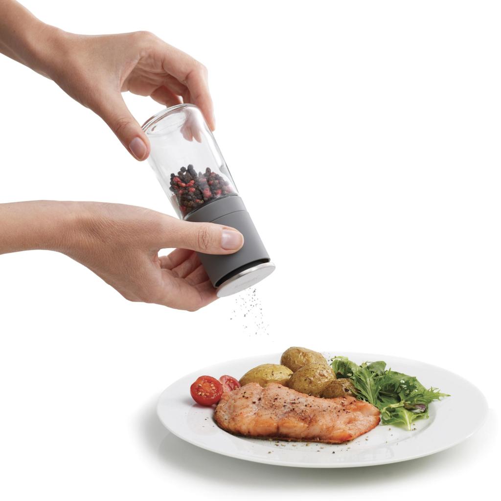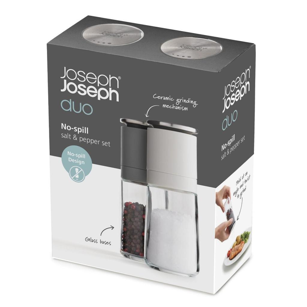 - Joseph Joseph DUO pipirų ir druskos malūnėlių rinkinys siūlo išmanų sprendimą patiekalams pagardinti be netvarkos ant stalviršio ar valgomojo stalo.