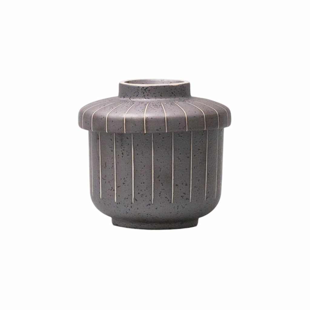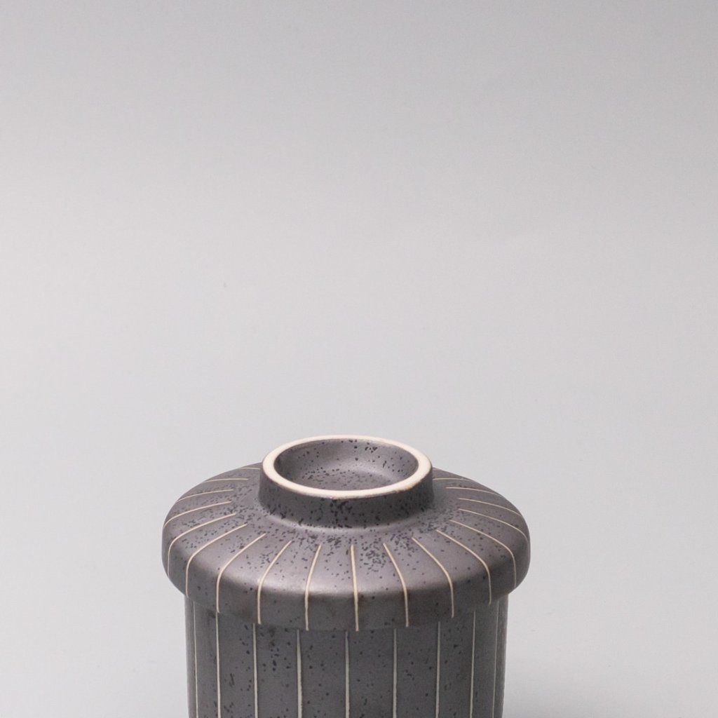- Matinė juoda glazūra su smulkiomis šviesiomis linijomis sukuria įdomų kontrastą ir suteikia puodeliui vizualinio gylio.