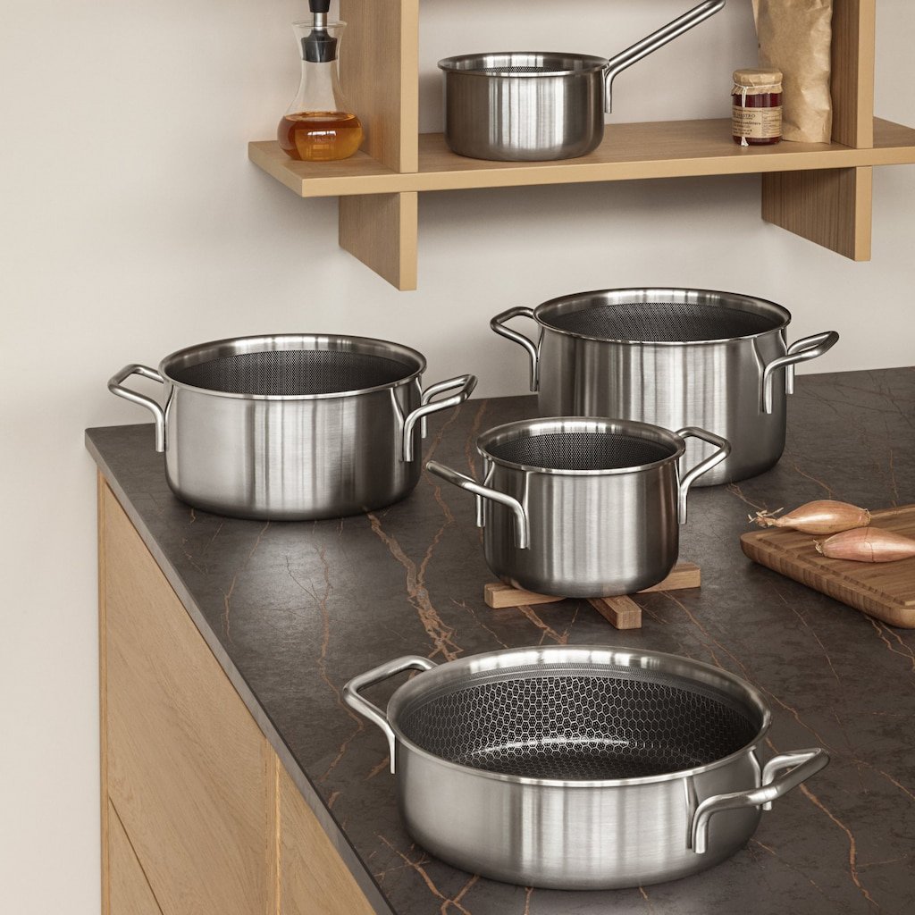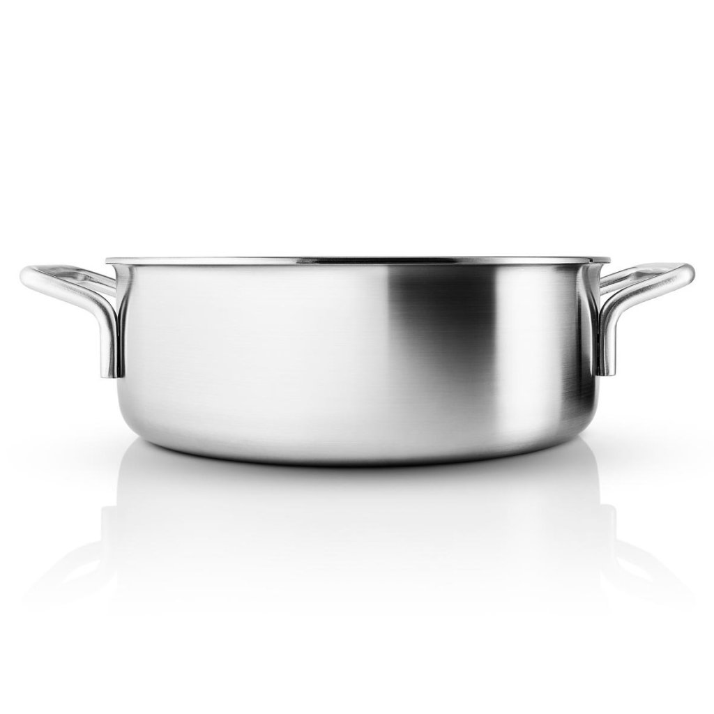 - Nerūdijantis plienas gili keptuvė sujungia tradicinį EVA dizainą TRIO su novatoriškomis medžiagomis, kad būtų pagerintas maisto gaminimas