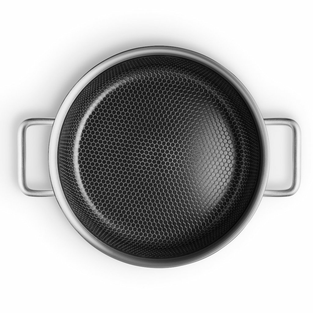 - vidinis paviršius padengtas keramine Slip-Let® nelimpančia danga, kuri sumažina pridegimą ir leidžia kepti su minimaliu riebalų kiekiu neprarandant skonio