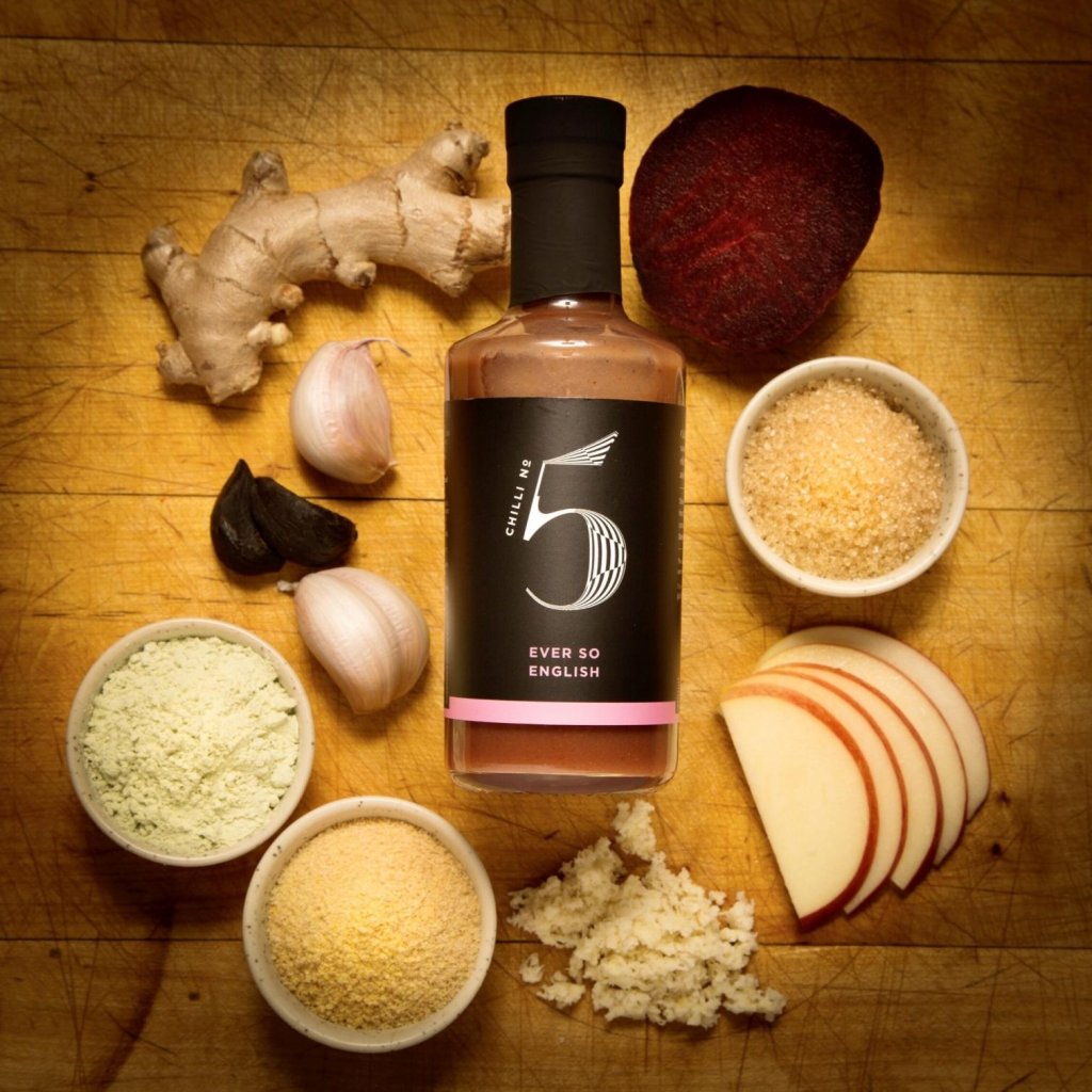 - EVER SO ENGLISH – tai aštrus padažas iš Chilli No5, kuriame derinami krienai, burokėliai ir kiti ingredientai, suteikiantys išskirtinį skonį su tipišku britišku charakteriu.