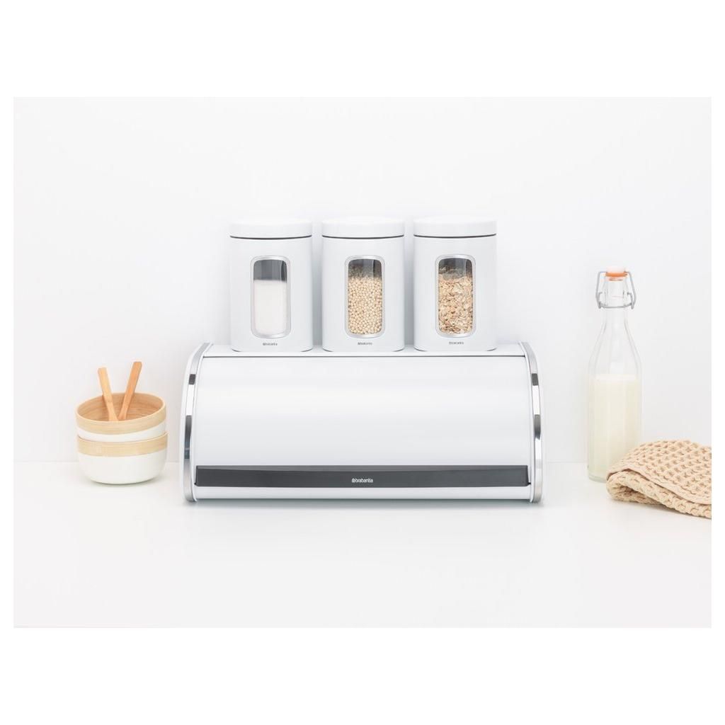 Ieškote vietos taupančio sprendimo, kaip išlaikyti duoną šviežią ar traškią? Susipažinkite su " Roll Top Bread Box" iš Brabantia. Joje telpa iki dviejų duonos kepalų, tačiau dėl savo konstrukcijos jai nereikia daug vietos. Ritininė duonos dėžė turi iš dalies plokščią viršų, todėl galima įrengti papildomų dėžių.