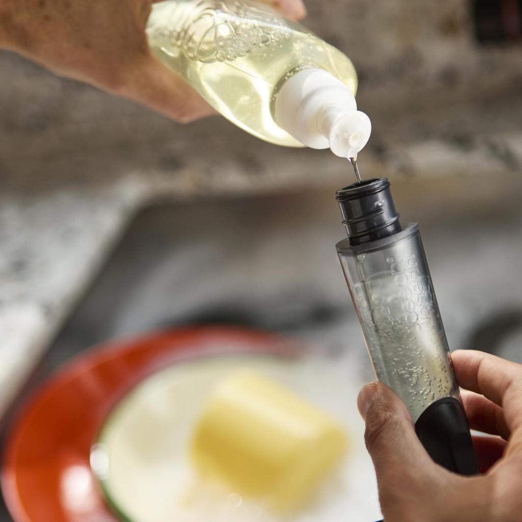 Paspaudę mygtuką, ploviklis dozuojamas tiksliai ten, kur reikia, ir jūs tęsiate be nereikalingų pauzių. Jokio buteliuko ieškojimo, jokių per didelių dozių, kurios sukeltų putų fiestą. Indų plovimas staiga atrodo įtartinai efektyvus, ir jūs galvojate, kodėl taip nebuvo visada.