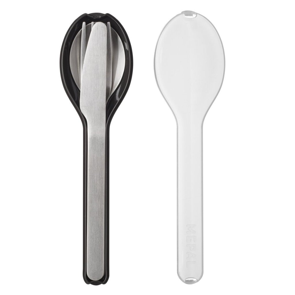 - komplekte yra peilis, šakutė ir šaukštas, todėl puikiai tinka pietums biure, kelionėje ar mokykloje