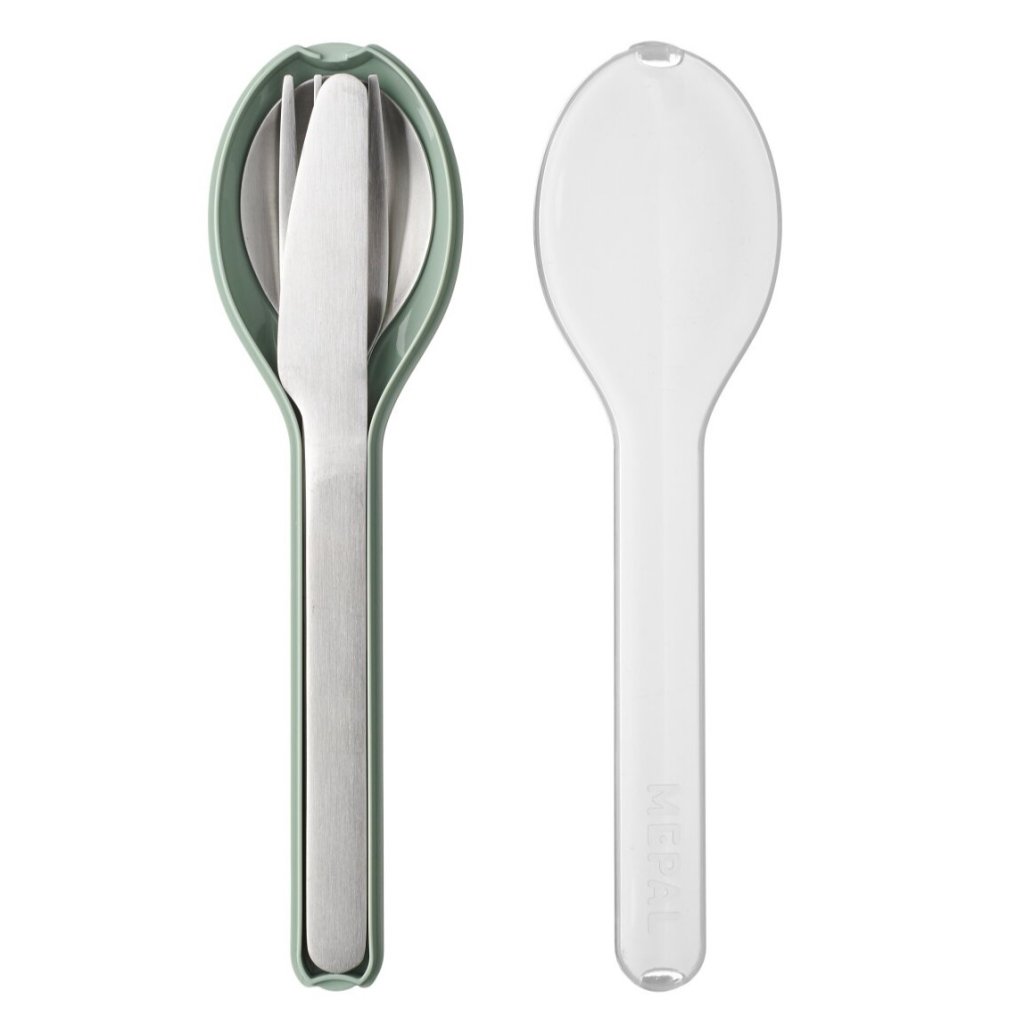 - komplekte yra peilis, šakutė ir šaukštas, todėl puikiai tinka pietums biure, kelionėje ar mokykloje