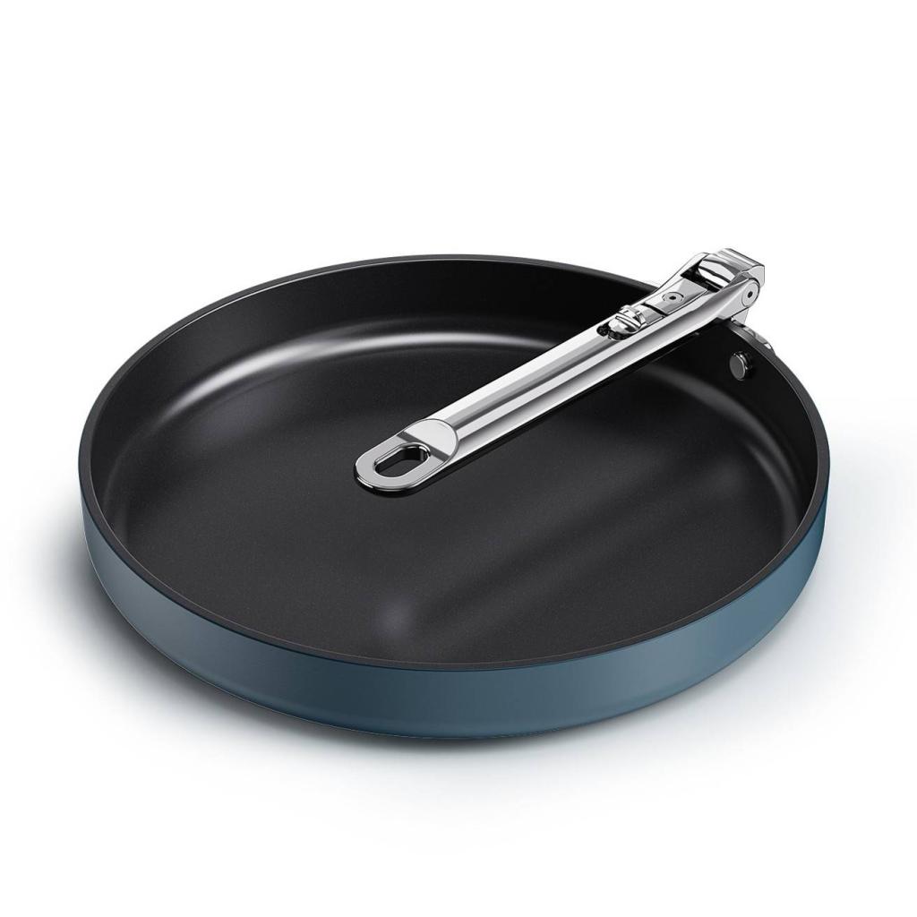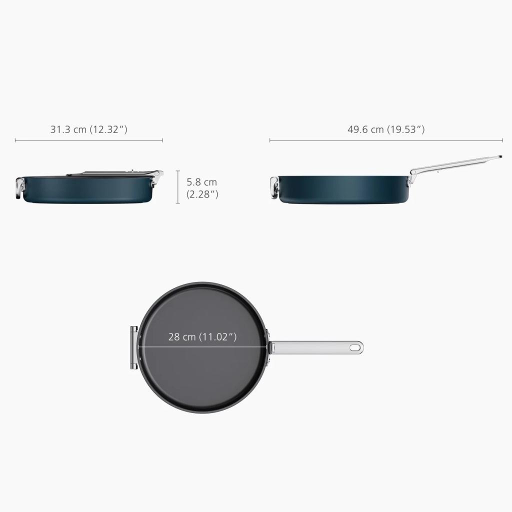 - Elegantiškas vidurnakčio mėlynumo dizainas suteikia keptuvei modernų vaizdą ir pabrėžia visos SPACE serijos aukščiausios klasės charakterį.