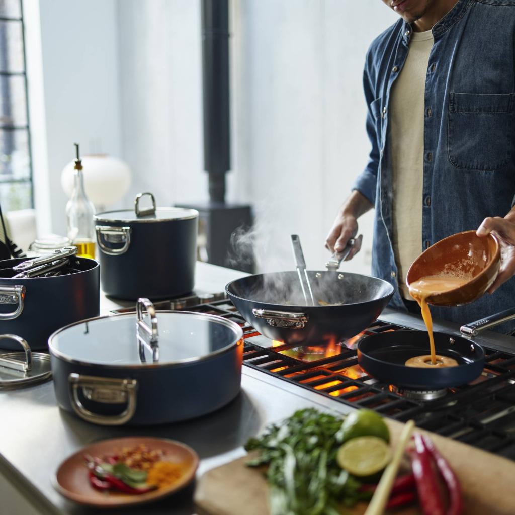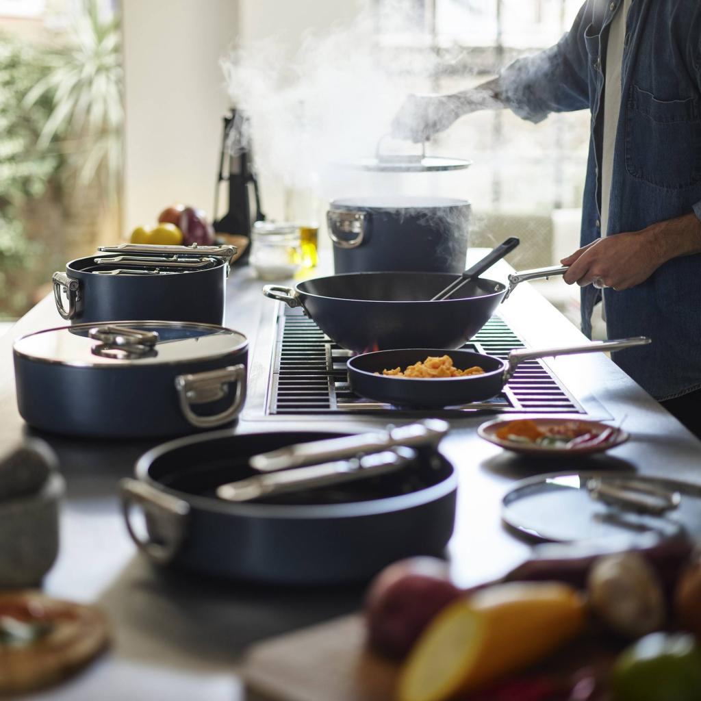 - Paviršius visiškai be PTFE, PFAS, PFOA, švino ir kadmio, todėl tinka kasdieniam naudojimui, ypatingą dėmesį skiriant saugai ir sveikesniam maisto ruošimui.