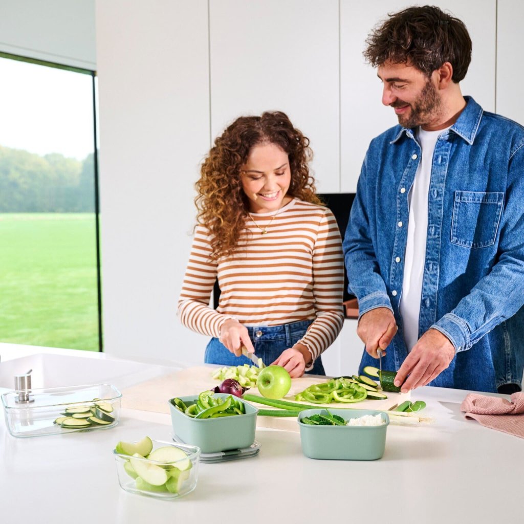 - dviejų mažesnių 450 ml talpyklų ir vienos didesnės 1000 ml talpyklos derinys patenkina pietų, salotų ir vakarienės poreikius