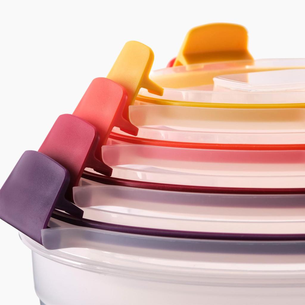 - Užsegami dangteliai gali būti sujungti, todėl jie laikomi kartu ir sumažina netvarką bei ilgą paiešką ruošiant maistą kasdien.