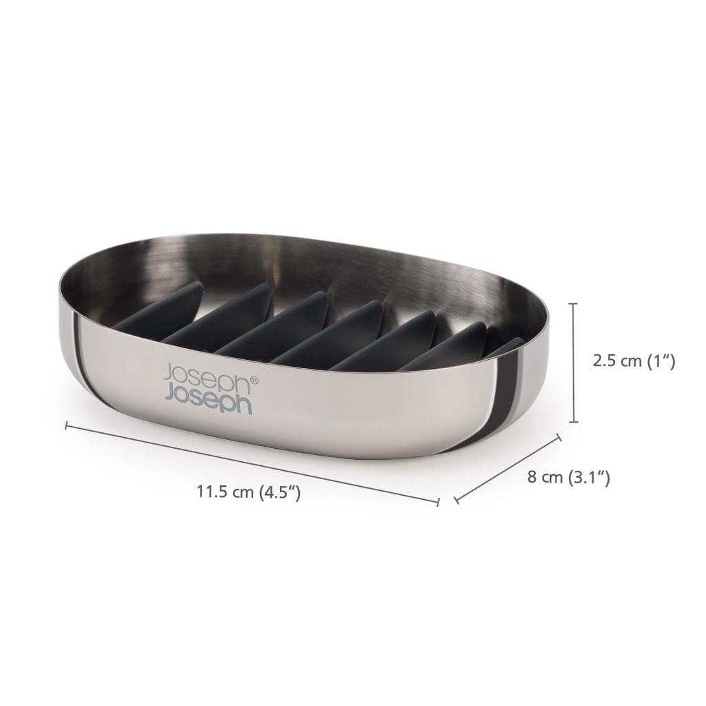- Atskirtos grotelės neleidžia muilui permirkti, todėl jis išlaiko savo formą net ir dažnai naudojant per dieną.