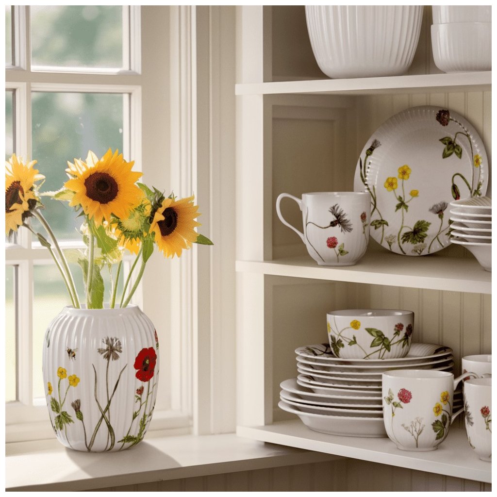 - porcelianas puodelis HAMMERSHOI SUMMER, kurio tūris 330 ml ir pievos gėlių motyvas, idealiai tinka rytinei arbatai, kavai ar žolelių užpilui.