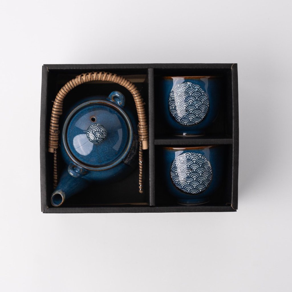 - Japoniškas rinkinys arbatai su jūros bangų dizainu