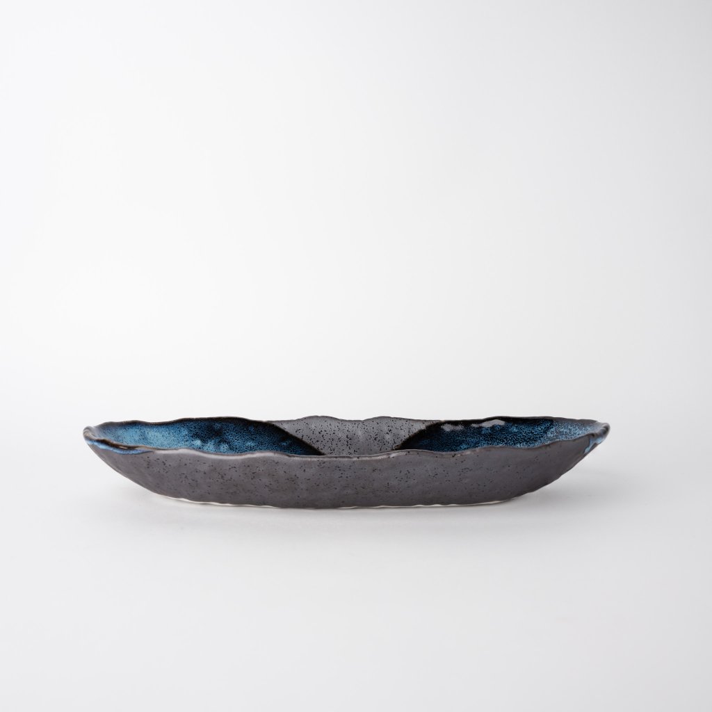 - Mėlynos ir juodos spalvos glazūros susimaišo ir sukuria dramatišką šviesos žaismą paviršiuje - kaskart pasukus lėkštę spalvos šiek tiek keičiasi ir primena vandenyno judėjimą.