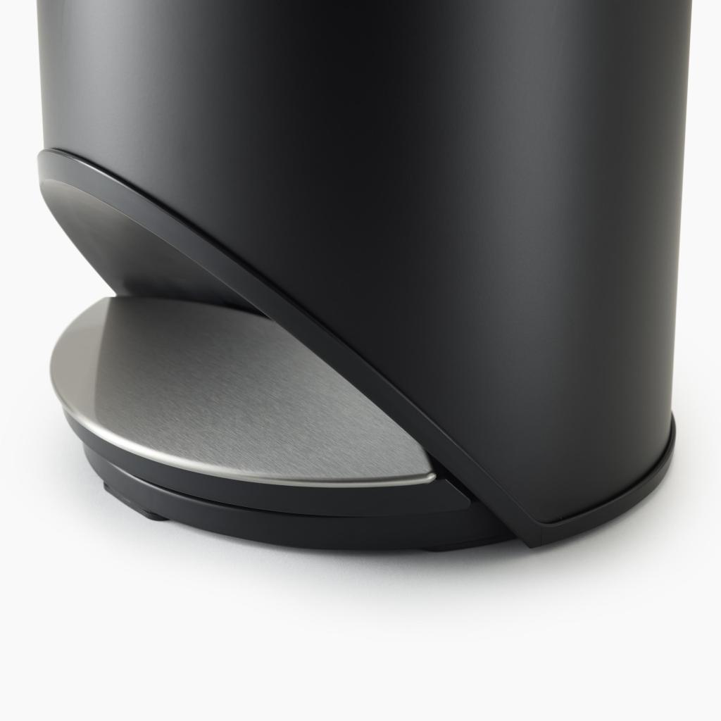 - Šiukšliadėžės konstrukcija suprojektuota taip, kad pedalas įsilietų į bendrą šiukšliadėžės formą ir neužimtų papildomos vietos ant grindų.