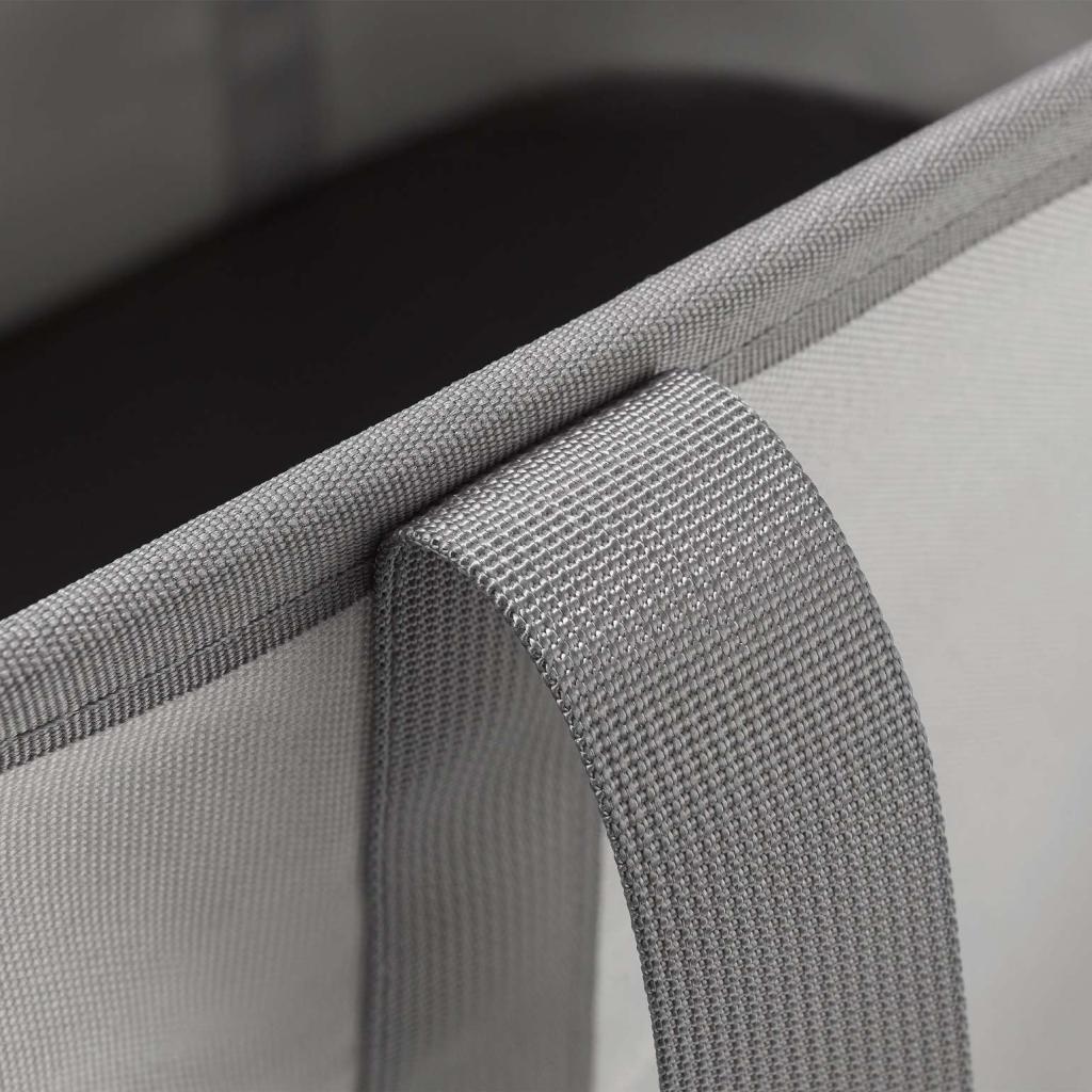 - Tvirtos, tvirtai prisiūtos rankenos leidžia patogiai nešti net ir pilnai pripildytą krepšį viena ranka tarp vonios kambario, miegamojo ir skalbimo mašinos.