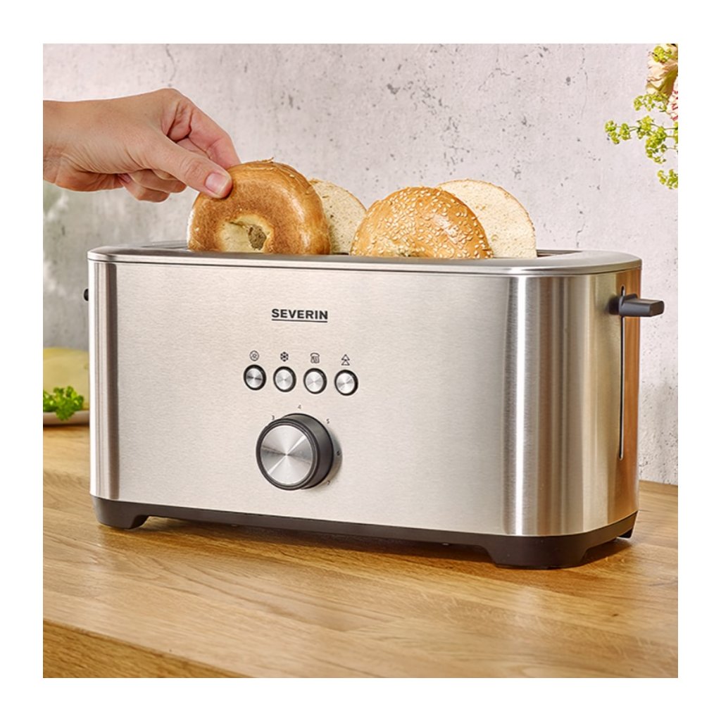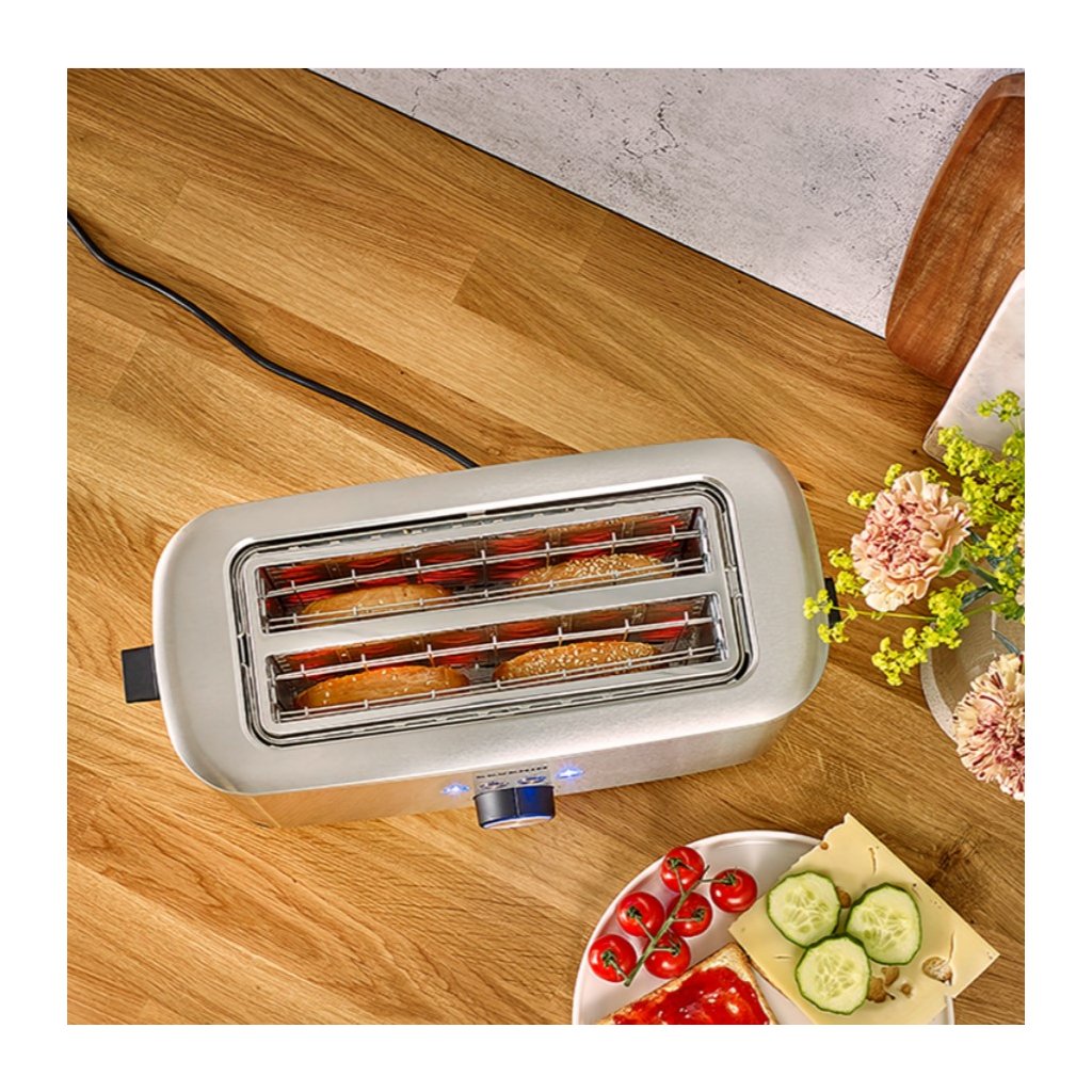 - du dideli lizdai su integruotu skrudintuvu, idealiai tinkantys 4 XXL dydžio skrebučiams, riekelėmis pjaustytai duonai, bandelėms ir bandelėms