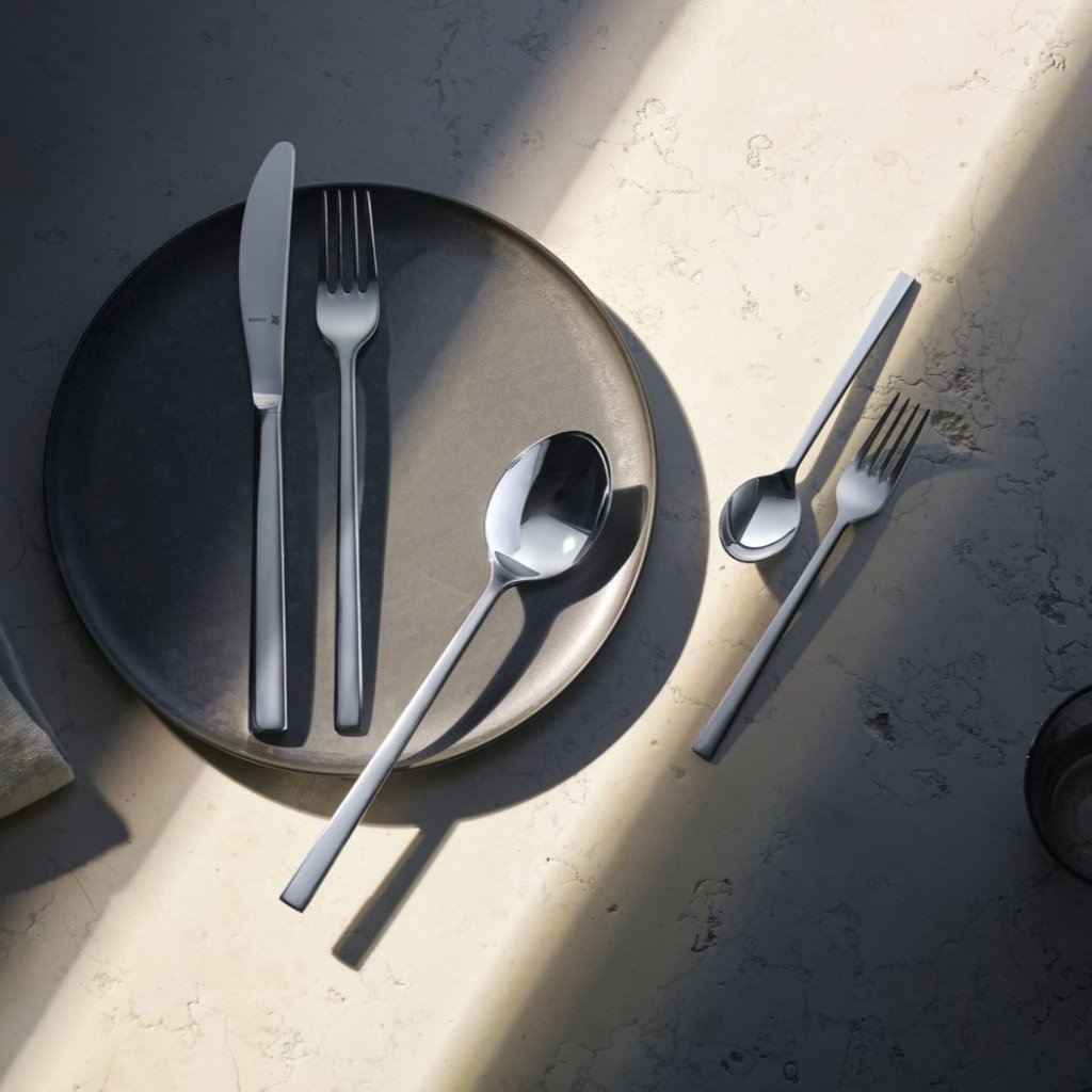 - į komplektą įeina peiliai, šakutės, šaukštai, šaukšteliai, arbatiniai šaukšteliai ir desertinės šakutės