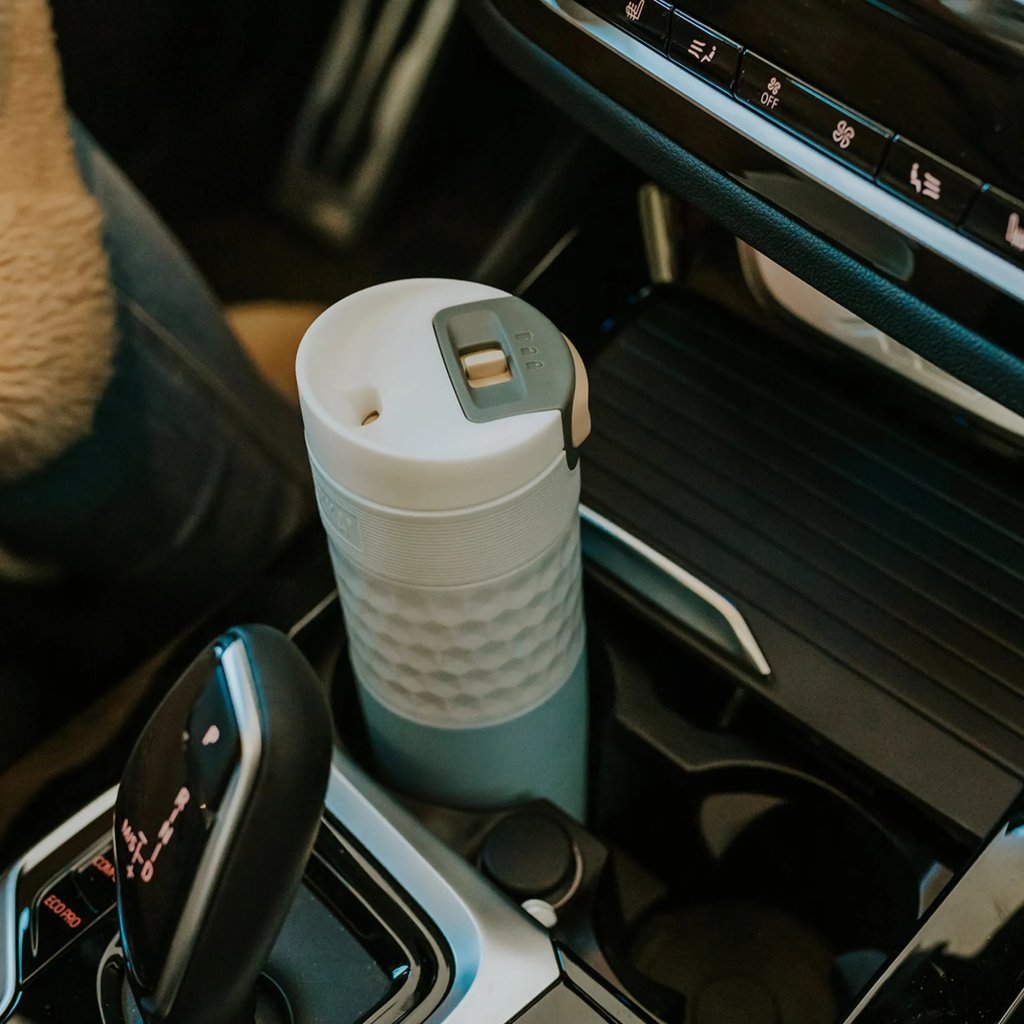 - puodelis galima lengvai atidaryti viena ranka, todėl patogu vairuoti, važiuoti dviračiu ar vaikščioti.