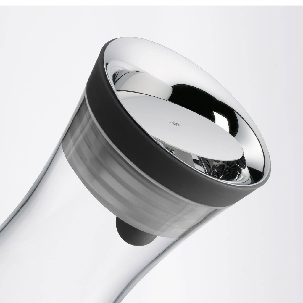 Ar tik gurkšnojate espreso kavą, ar ruošiatės ruošti įspūdingą šventę savo artimiesiems? Vanduo yra tinkamas jų abiejų papildymas. "WMF" sukūrė karabiną vandeniui visiems atvejams. Jis atitinka higieniško vandens tiekimo reikalavimus ir yra labai patrauklaus dizaino. Gerai apgalvotas dangtelis ne tik automatiškai uždaro kavinuką, bet ir dėl įmontuoto sietelio neleidžia į jį įpilti ledo kubelių ar vaisių gabalėlių. Karafą galima įstatyti į šaldytuvo dureles.