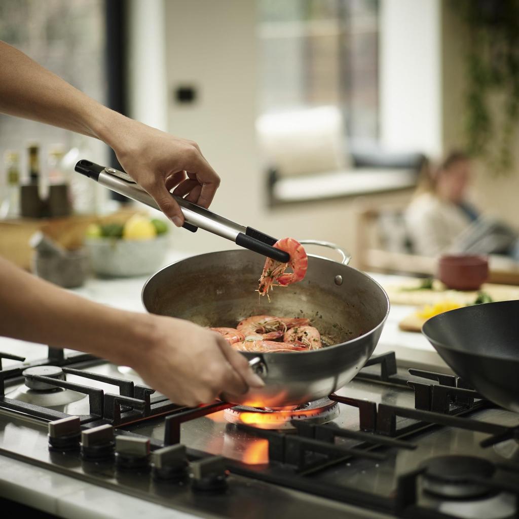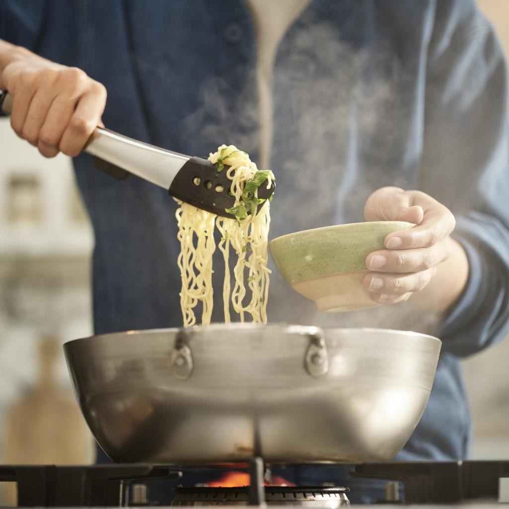 - Žnyplių silikoniniai galai gali atlaikyti iki 270 °C temperatūrą ir leidžia liesti karštus ingredientus gaminimo metu.