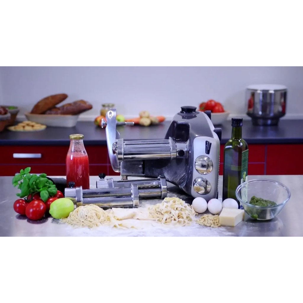 - papildomi priedai: makaronų priedas, citrusinių vaisių gamintuvas, maišytuvas, mėsmalė, sulčiaspaudė, daržovių tarkavimo mašina, makaronų diskai, grūdų malūnėlis, dribsnių gamintuvas, sausainių priedas