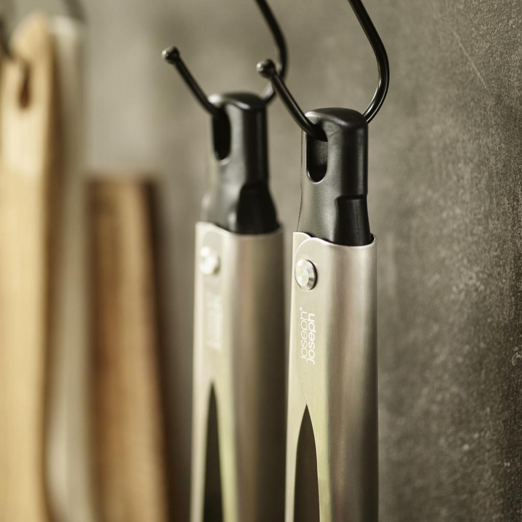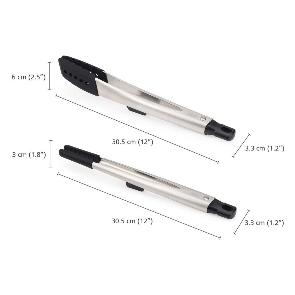 - Joseph Joseph ELEVATE FUSION virtuvinių žnyplių rinkinys siūlo dviejų dydžių žnyples patogiam įvairių rūšių maisto produktų laikymui gaminant, patiekiant ar kepant ant grotelių.